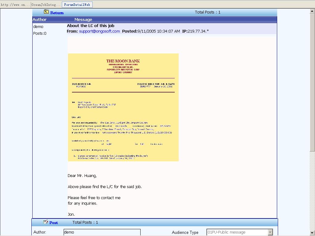 After couple of years trial, development, experiment, struggling, and failure, we turned to .Net and developed the first version of our Ocean/Air Freight Systems. The result was still unacceptable like all other Internet based solutions on the market - application part is perfect but the system is too slow for online operations.